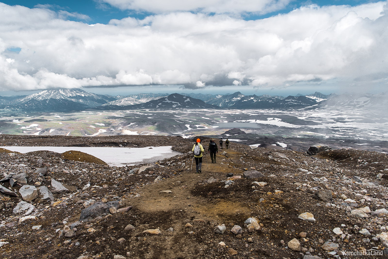 Kamchatka’s summer feels more like a cold and foggy autumn. Climbing up above the clouds, you find yourself in a sunny and warm spring day with melting snow and running brooks. The winter with knee-deep snowdrifts comes a few kilometres up in the mountains.