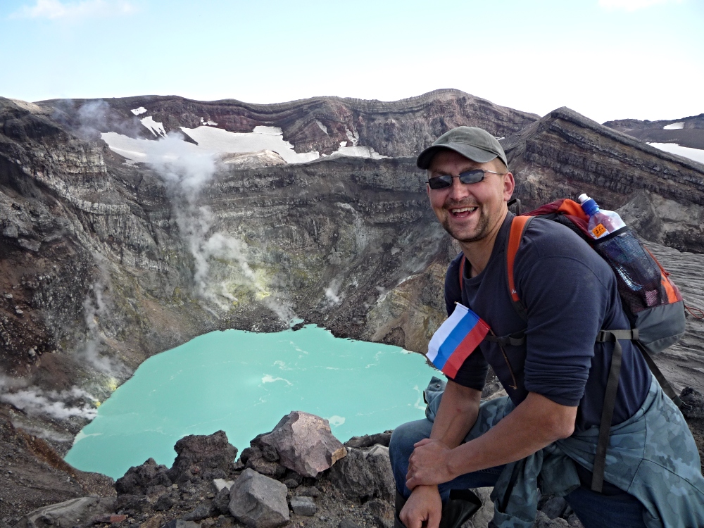 It takes about eight hours to climb Tolbachik, although it depends on your fitness. Six hours would be enough for some travellers and others would be exhausted after two hours and turn back home. Tolbachik has a unique crater — or caldera, in academic terms — which is 1.8 kilometres wide and 400 metres deep. It’s large enough to fit a small village.